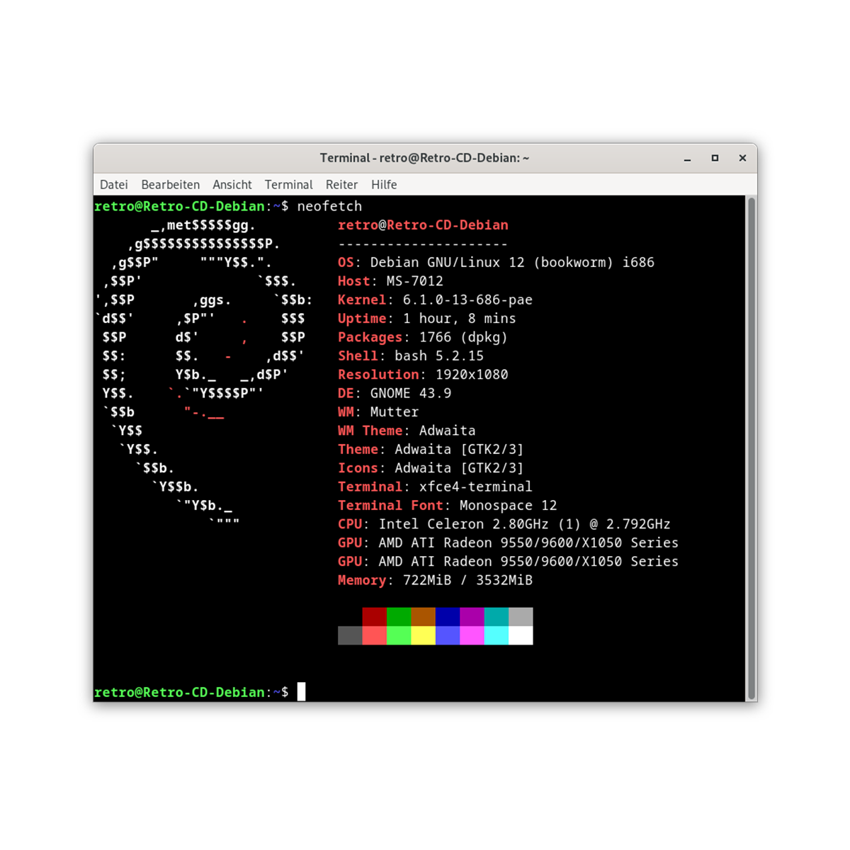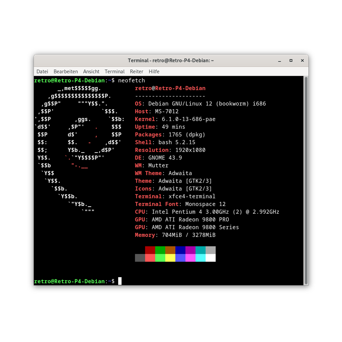 Natürlich ist es so eher eine akademische Herausforderung gewesen als echter Nutzen. Windows Vista läuft mit nur einem langsamen Kern von einer PATA-Festplatte wirklich schlecht. Debian Bookworm hat schlimme Grafikglitches.