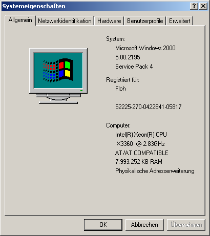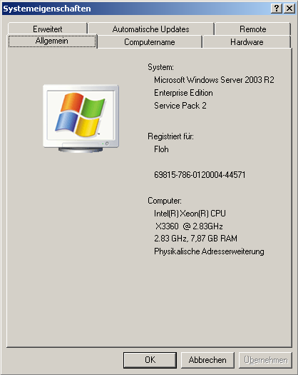 Installiert ist ein Triple Boot Setup aus Windows Server 2000, 2003 R2 und 2008. Alles 32-Bit und parallel zueinander auf einer OEM SATA SSD von Toshiba (MBR). Gebootet wird via BIOS.