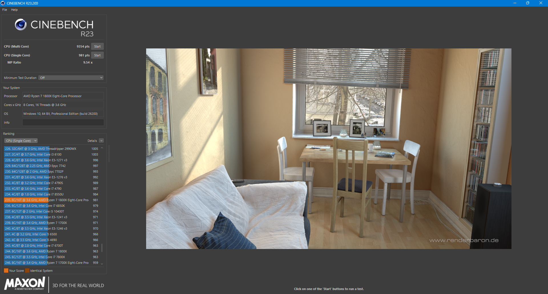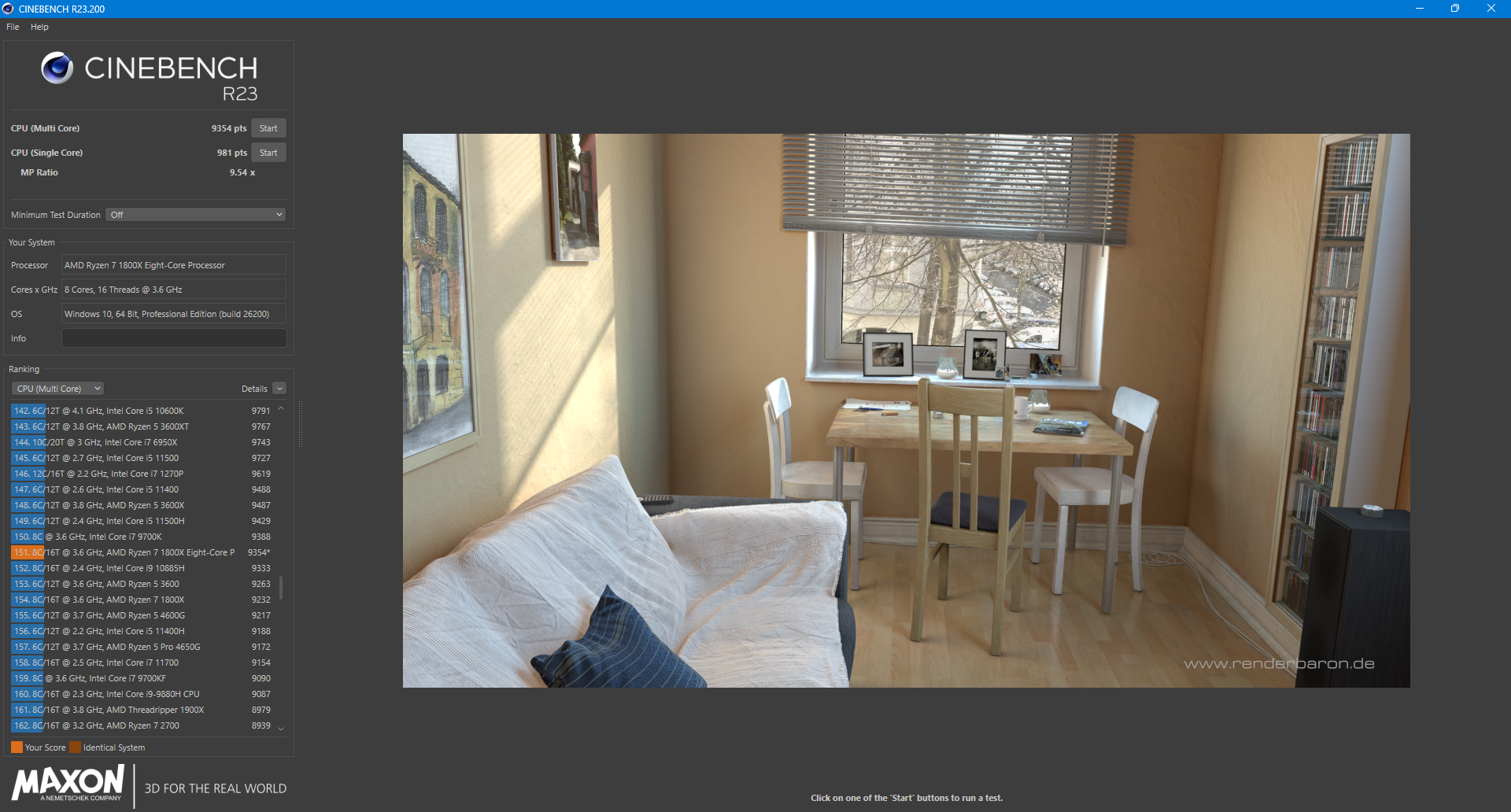 | Cinebench R23 | Single 981 Punkte Multi 9354 Punkte |