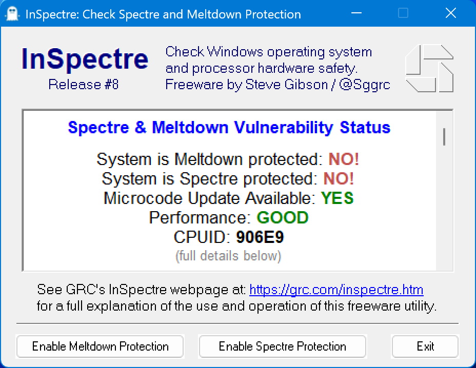 Die Gibson Research Corporation hat ein super nützliches kleines Programm veröffentlicht, um schnell und einfach einen Überblick des aktuell laufenden Systems zu bekommen und selbstbestimmt zu entscheiden, welche Mitigations man aktivieren oder deaktivieren möchte.
