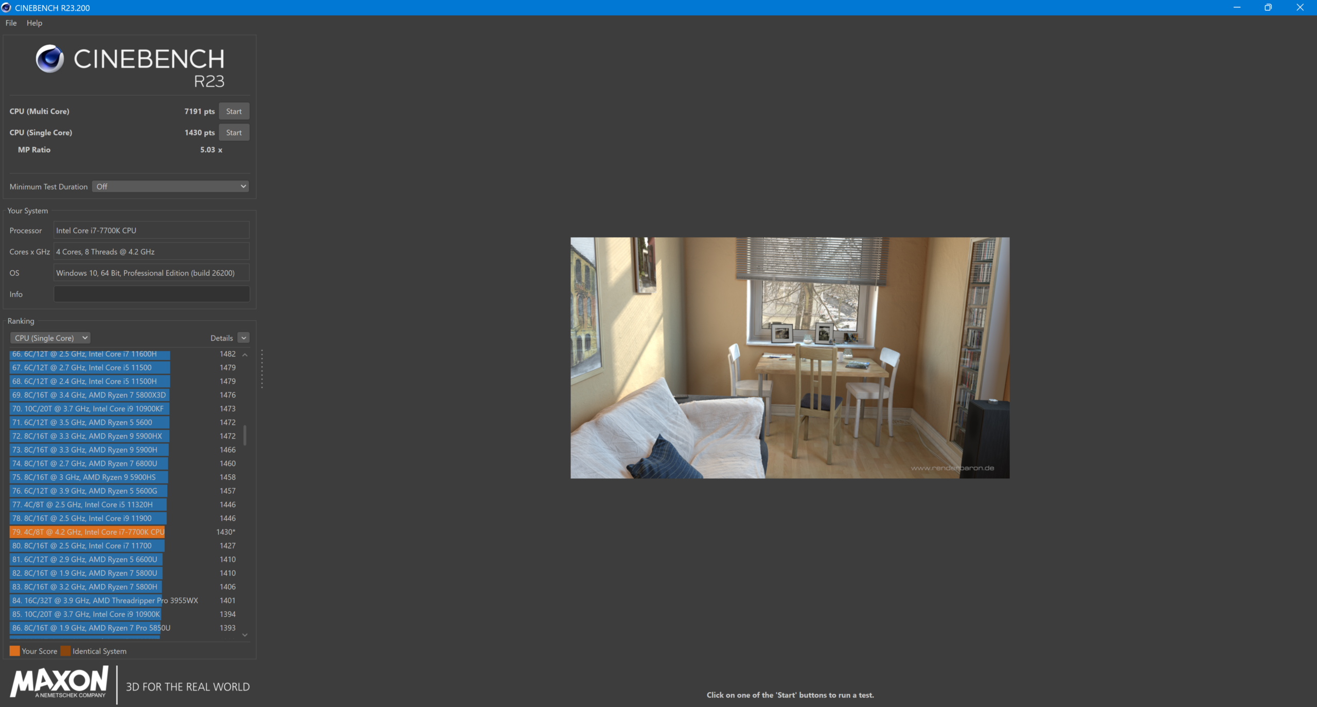 | Cinebench R23 Multi | 7112 | 7191 | + 1,11% |
