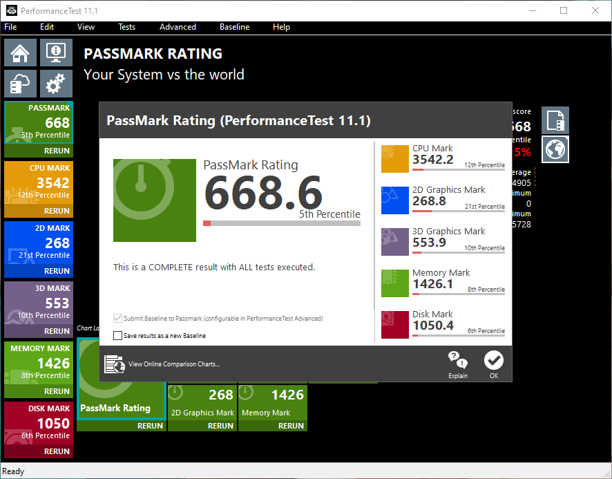 Dann die PassMark-Ergebnisse, durch fehlendes Internet zum Testzeitpunkt allerdings nur offline: