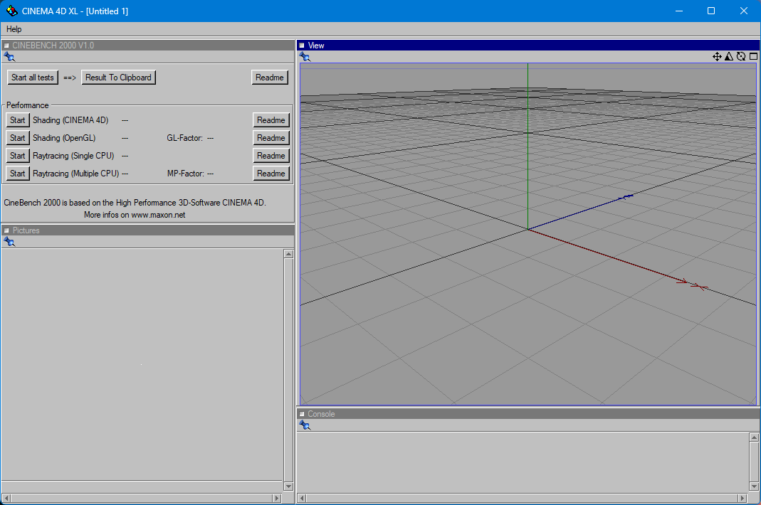CineBench 2000December 1st, 1999x86 (32-Bit)Yes (OpenGL)Windows 95 / 98 / NT 4 / 2000 or newer